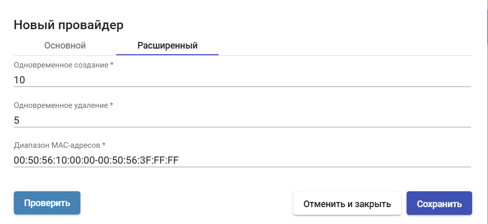 **Имя (Name)** - наименование создаваемого провайдера для отображения в системе.